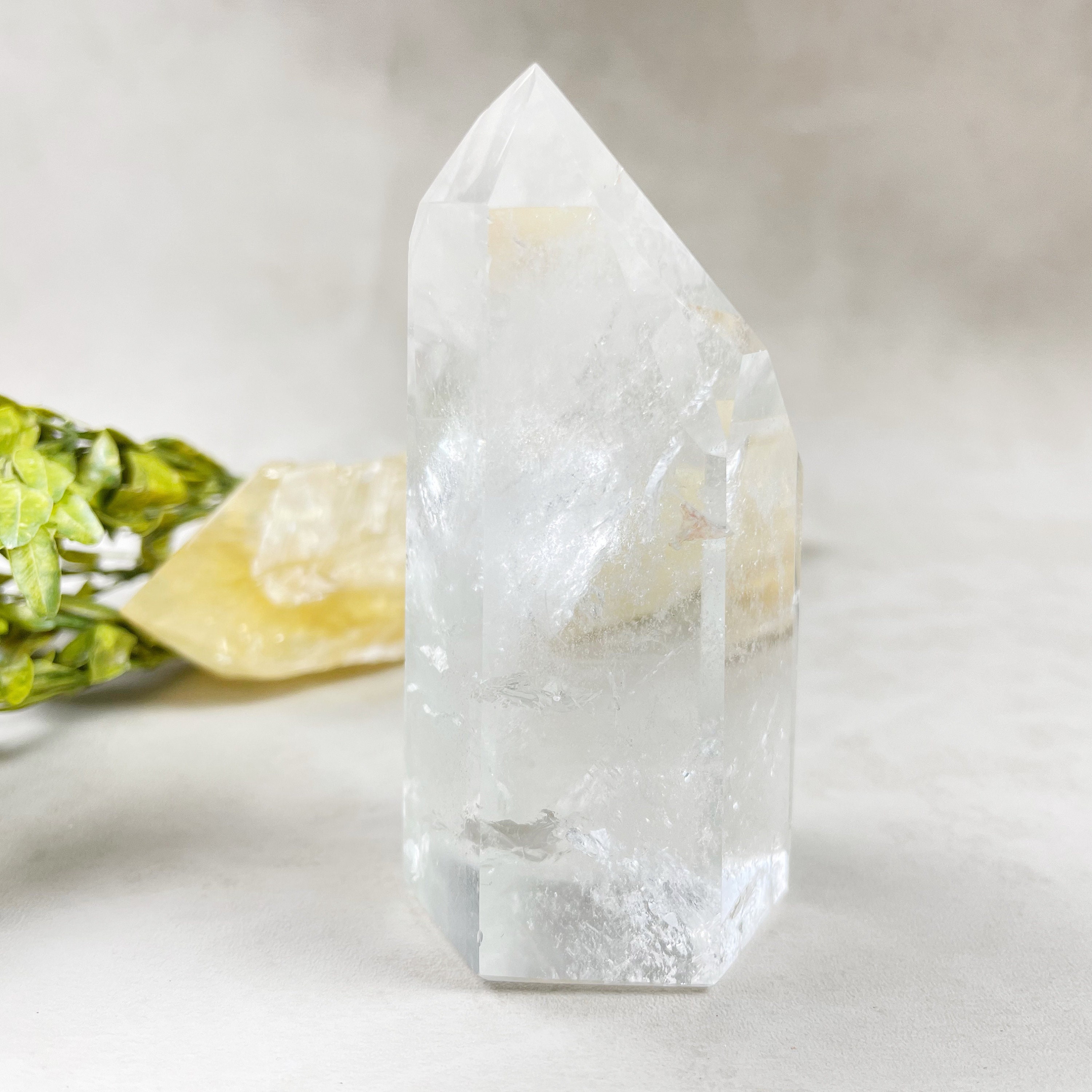 This listing is for one tower. The tower is made amazing quality clear quartz. The quartz tower has many internal cracks which create so many gorgeous rainbows. The cracks are natural and normal and give this tower so much beauty.