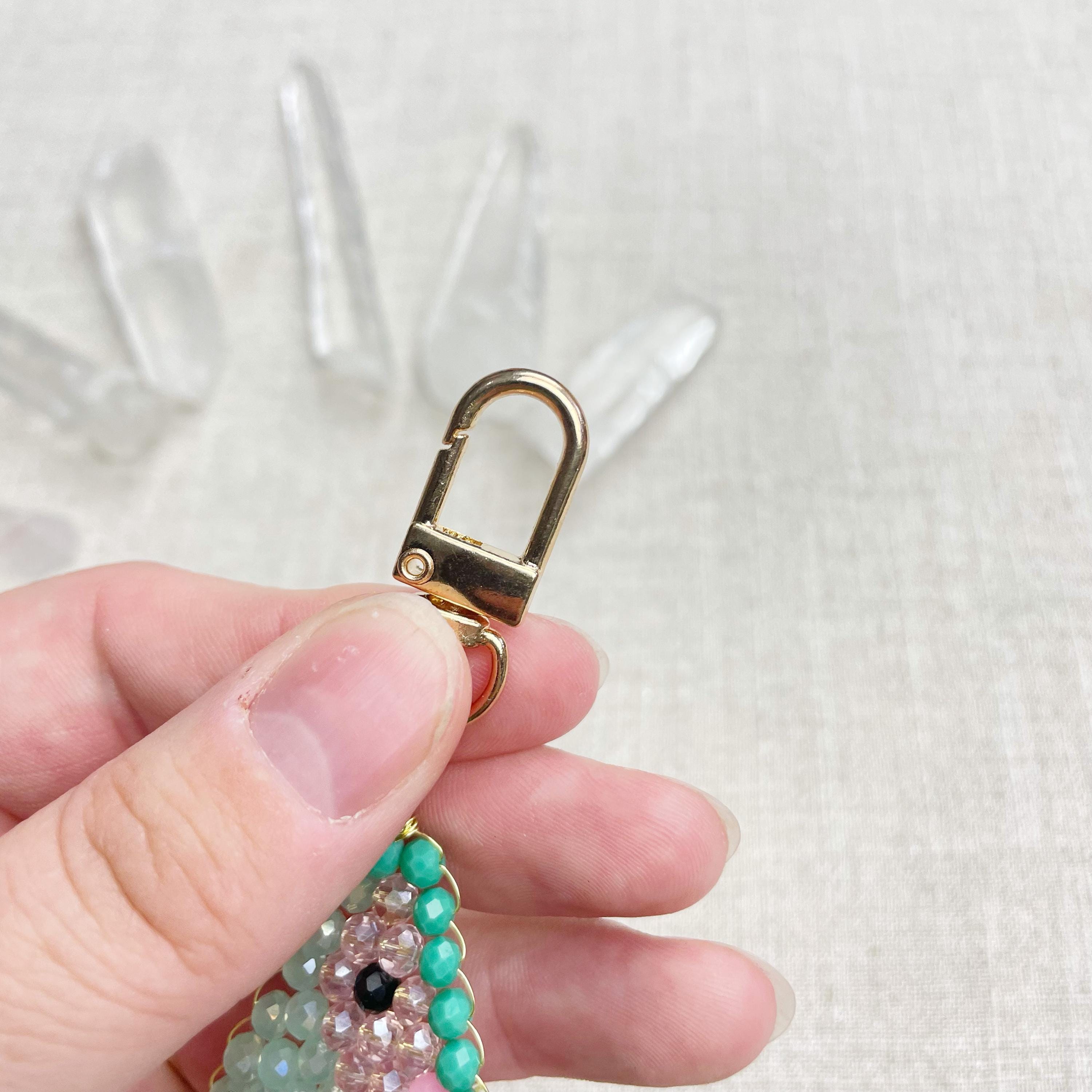 The charm is finished off with a gold plated jump ring and gold plated swivel clasp. The clasp makes this a perfect key chain or bag charm.