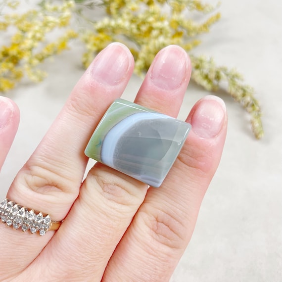 Gold Opalite Pyramid Gemstone Adjustable Ring (EPJ-RTD13-1)